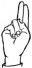 На ћирилици написано ЛЕНА ПАЧАНИН састоји се из 11 слова [?]. Исписано ћириличном једноручном азбуком за глувонеме: